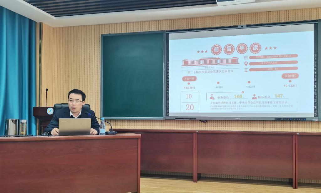 张银堂以《学习贯彻党的二十届四中全会精神为推进中国式现代化贡献地方高校力量》为题,从“十四五”辉煌成就、历史交汇点重大意义、“十五五”形势判断与目标部署、教育强国建设新任务、团队建设路径等五个维度,系统阐释了全会精神。他指出,全会通过的《中共中央关于制定国民经济和社会发展第十五个五年规划的建议》把“教育—科技—人才”一体写入五年规划建议,明确提出“超常布局急需学科专业”,为地方高校分类发展、特色攀升提供了前所未有的政策窗口。报告结合PPT详实数据,强调要把制度型开放、科技自立自强、拔尖创新人才培养等重大部署,转化为高校基层的“施工图”,在“新材料+新能源”“智能建造+数字孪生”“3D打印+微纳制造”等交叉方向率先突破,服务新质生产力加速形成。
