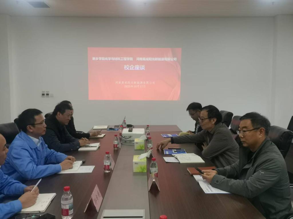 10月17日上午,院士工作站周建伟主任、王晓钰副主任、王储备和马志华博士一行四人,到河南易成阳光新能源有限公司开展校企合作的洽谈和交流。